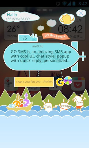 designed for GO SMS Pro, is a new individual popup, with Full Screen, Cool UI, and supports animation interaction , recommend to you!